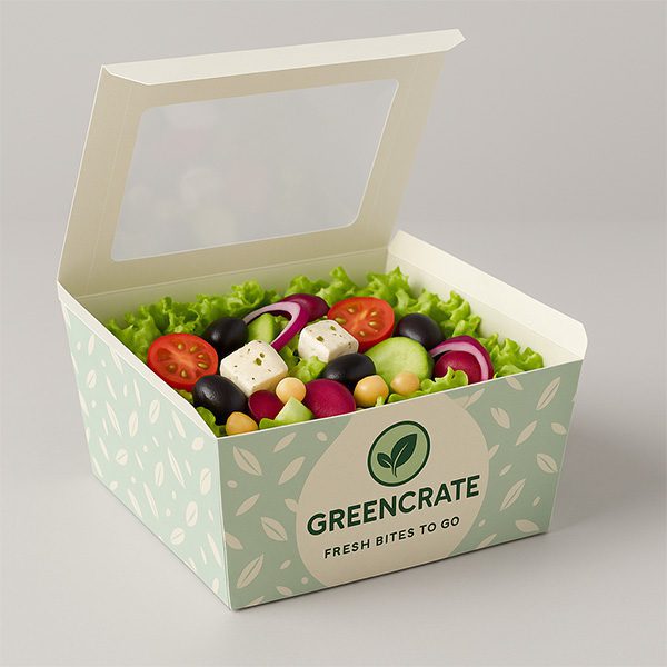 For delivery-focused brands, we help you avoid sogginess or damage during transport by recommending breathable vents, sealed seams and rigid framing where needed. For those selling shelf-ready items, we ensure that every box displays your product’s natural colours and texture through smart cut-outs or high-clarity windows — perfect for showcasing salad boxes with custom logos.